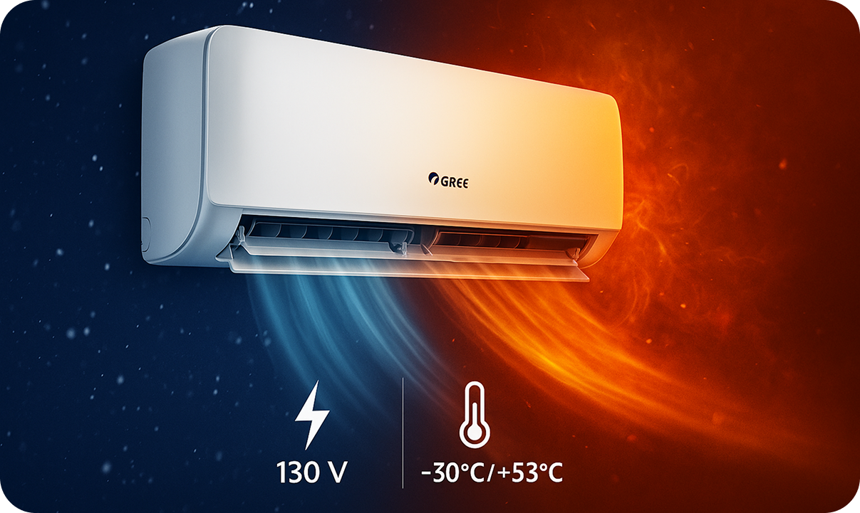Техника не отключается при просадках сети и не перегревается в пик жары — идеально для местного климата и нестабильной электросети. Кондиционеры Gree адаптированы к климату Узбекистана и уверенно работают в самых сложных условиях: