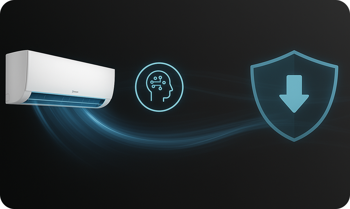 Искусственный интеллект G-AI 2.0 анализирует параметры окружающей среды и автоматически оптимизирует работу кондиционера для максимального комфорта и энергоэффективности.